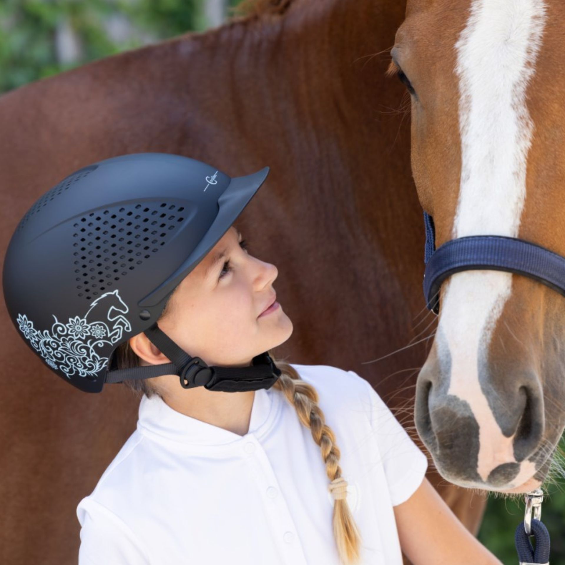Le Casque d'équitation enfant Beauty 2.0 allie style et sécurité dans un design sportif qui impressionne tant lors de l'entraînement que des compétitions. Avec son motif floral, ce casque apporte une touche de fraîcheur à votre look équestre. Il respecte les normes de sécurité les plus strictes tout en permettant aux jeunes cavaliers d'exprimer leur style personnel. Grâce au système Disc, vous pouvez ajuster la sangle à votre tour de tête facilement et sans outil, garantissant ainsi un ajustement parfait.