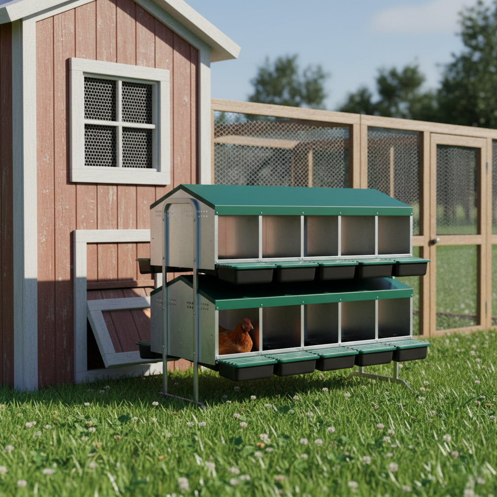 1x Pondoir à étages pour poules en métal avec double support Agrarzone