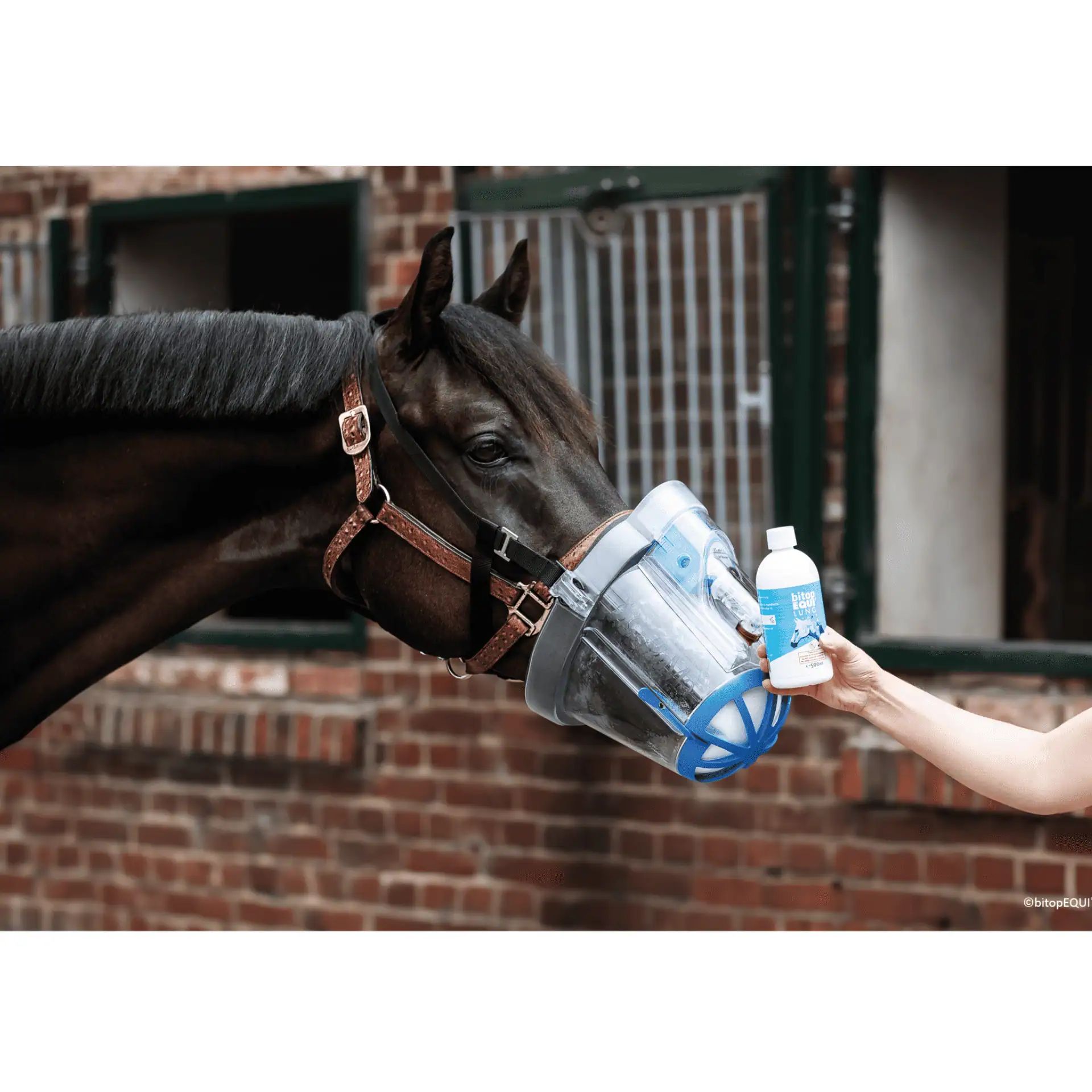 bitopEQUI® LUNG Complete est la solution idéale pour le soin, l'humidification et le nettoyage des voies respiratoires de votre cheval - surtout s'il souffre de toux, d'asthme équin, d'allergies ou de mucosités incrustées. Avec la solution isotonique prête à l'emploi, vous hydratez durablement les voies respiratoires tout en créant une couche protectrice à base d'eau. Celle-ci protège des pollens, de la poussière, des allergènes et d'autres influences extérieures qui peuvent irriter les voies respiratoires. Grâce à la molécule naturelle de protection contre le stress bi-medEctoin®, la solution bitopEQUI® LUNG Complete est non seulement efficace, mais aussi particulièrement douce.