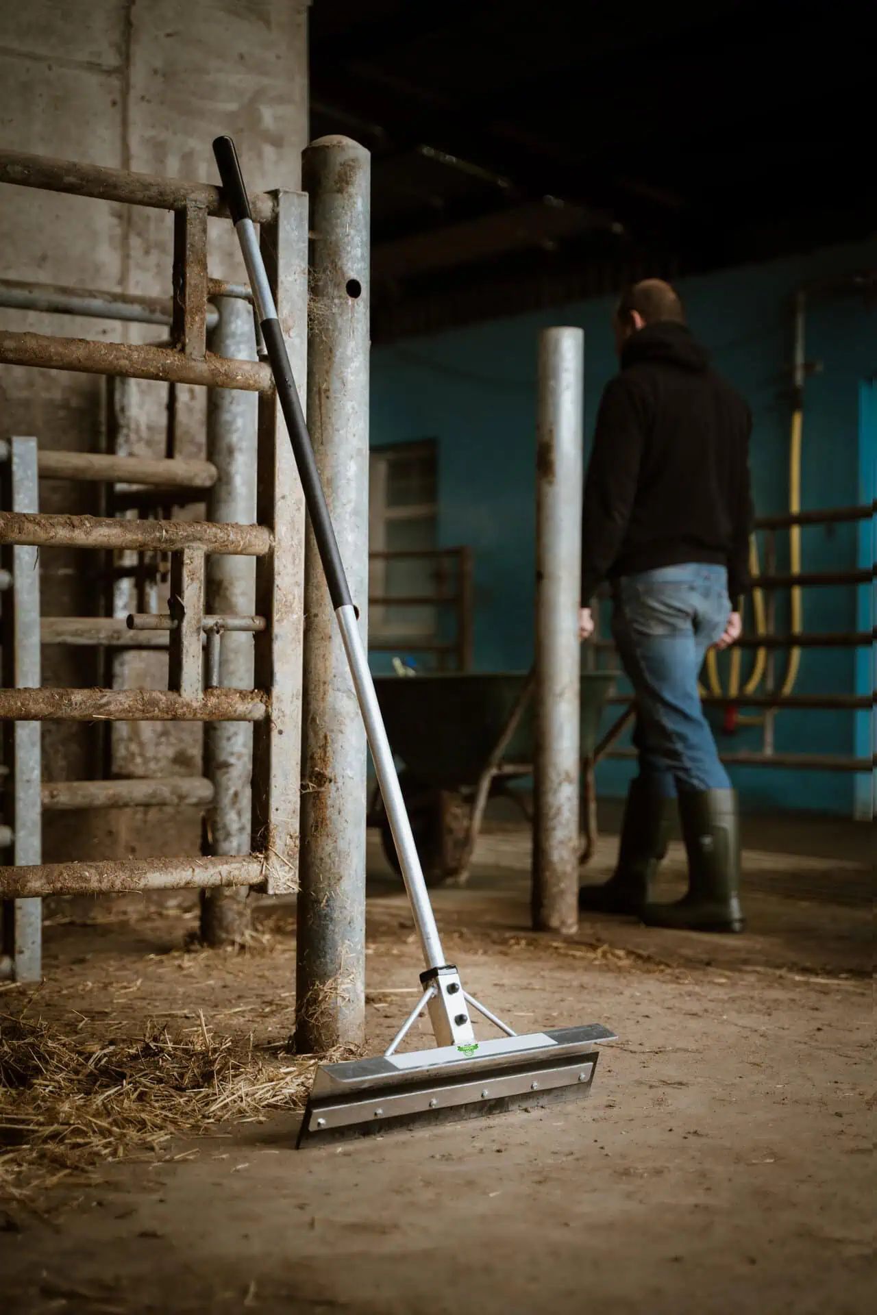 Le racloir est entièrement fabriqué en aluminium, ce qui le rend non seulement robuste mais aussi particulièrement facile à entretenir. Vous pouvez le nettoyer facilement avec un nettoyeur haute pression, ce qui le rend plus hygiénique que les modèles avec manche en bois. Grâce à sa haute qualité de fabrication, vous pouvez compter sur une durée de vie extrêmement longue. Que ce soit pour un usage privé ou agricole, ce racloir est idéal pour tous ceux qui accordent de l’importance à la qualité et à l’efficacité.