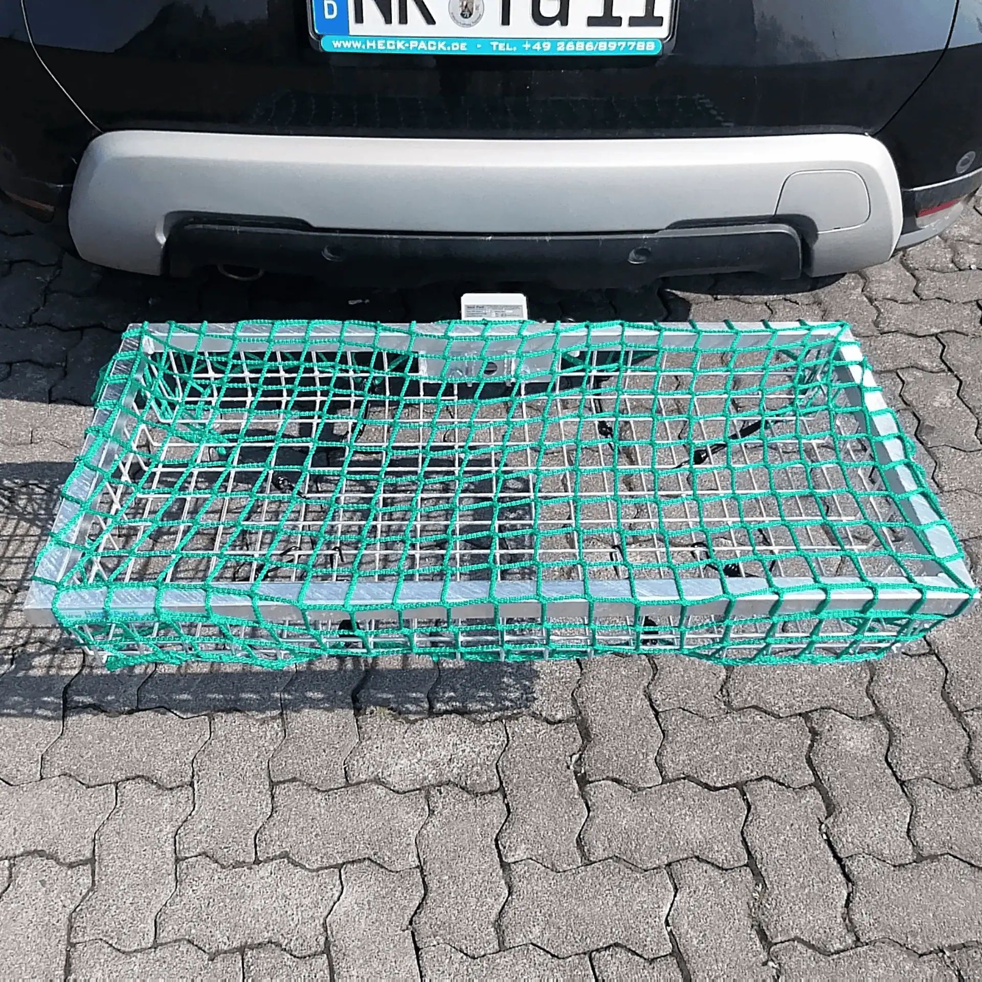 Fabriqué en nylon de haute qualité de 4 mm, le filet de protection Heck-Pack offre une excellente durabilité. Contrairement aux produits courants provenant d'Asie, ce filet privilégie la qualité et la longévité. Avec une maille de 5 cm et un renfort périphérique, il assure le transport sécurisé même de charges plus volumineuses. Grâce aux 8 élastiques repositionnables inclus avec des crochets S galvanisés, sécuriser du gibier, des marchandises ou d'autres charges devient un jeu d'enfant.