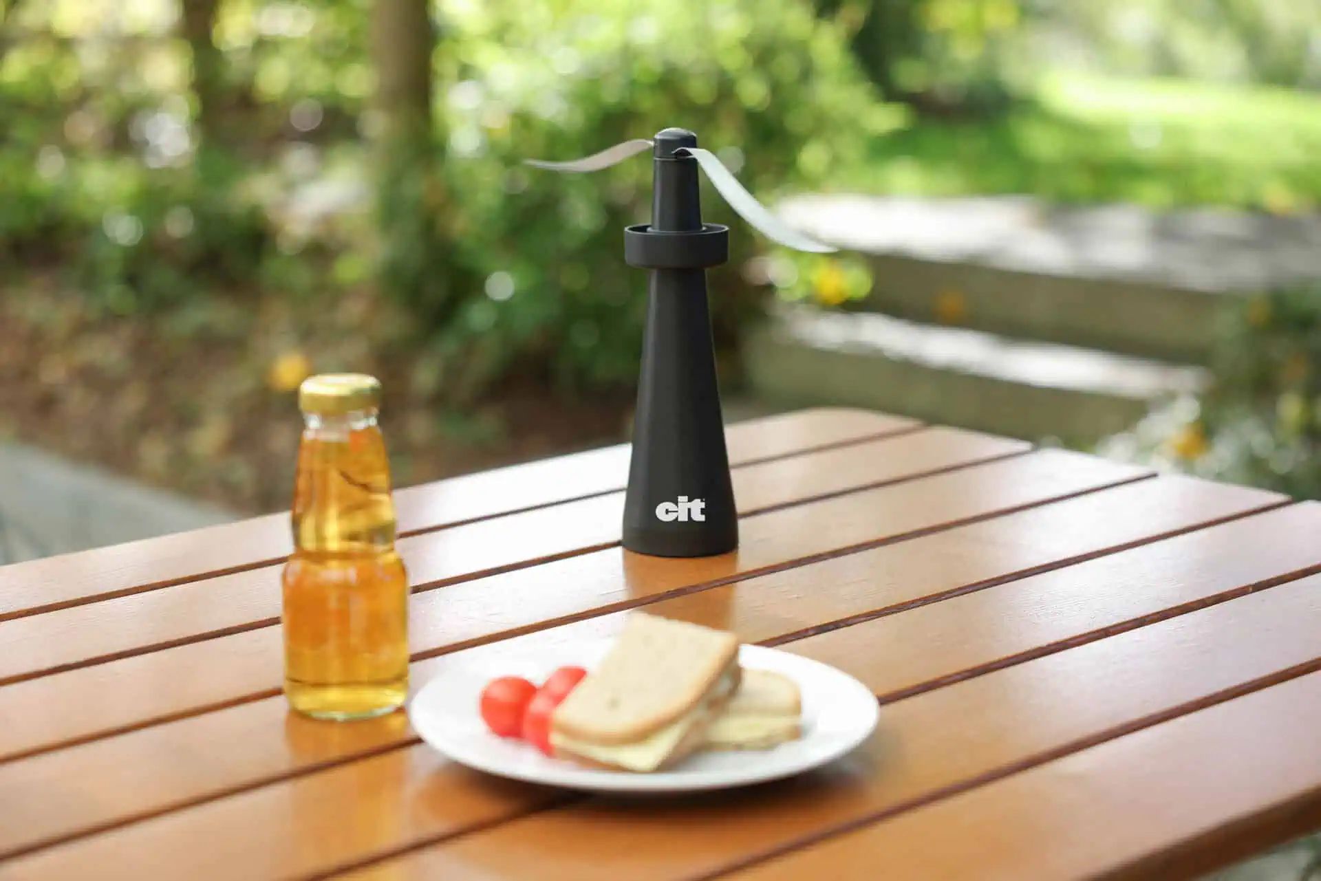 - The air turbulence created by the rotating and reflective blades, combined with essential oils in the bowl, makes it difficult for flies and wasps to approach