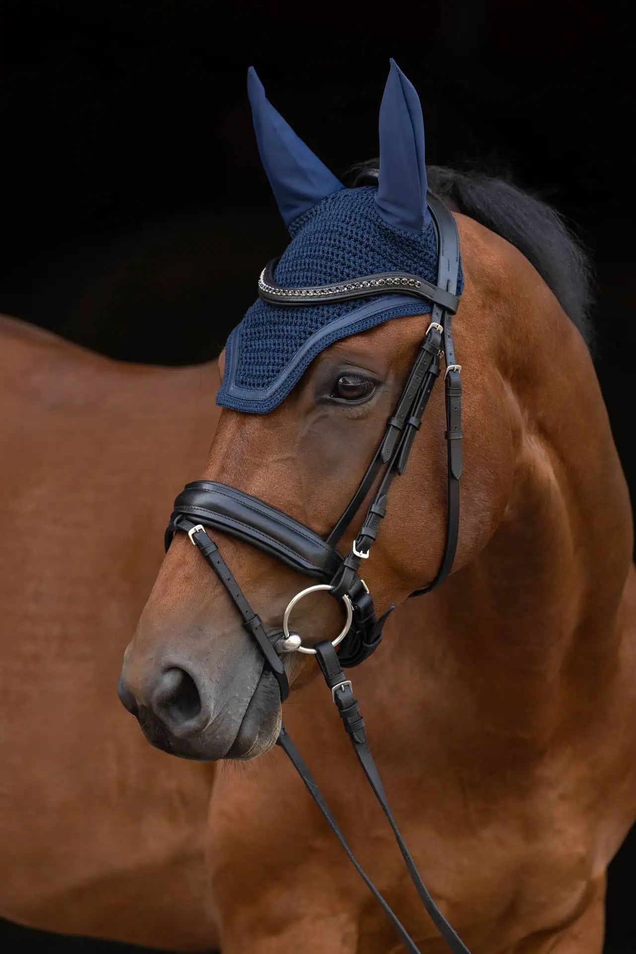 Bonnet anti-mouches Covalliero Linea, bleu marine foncé, poney