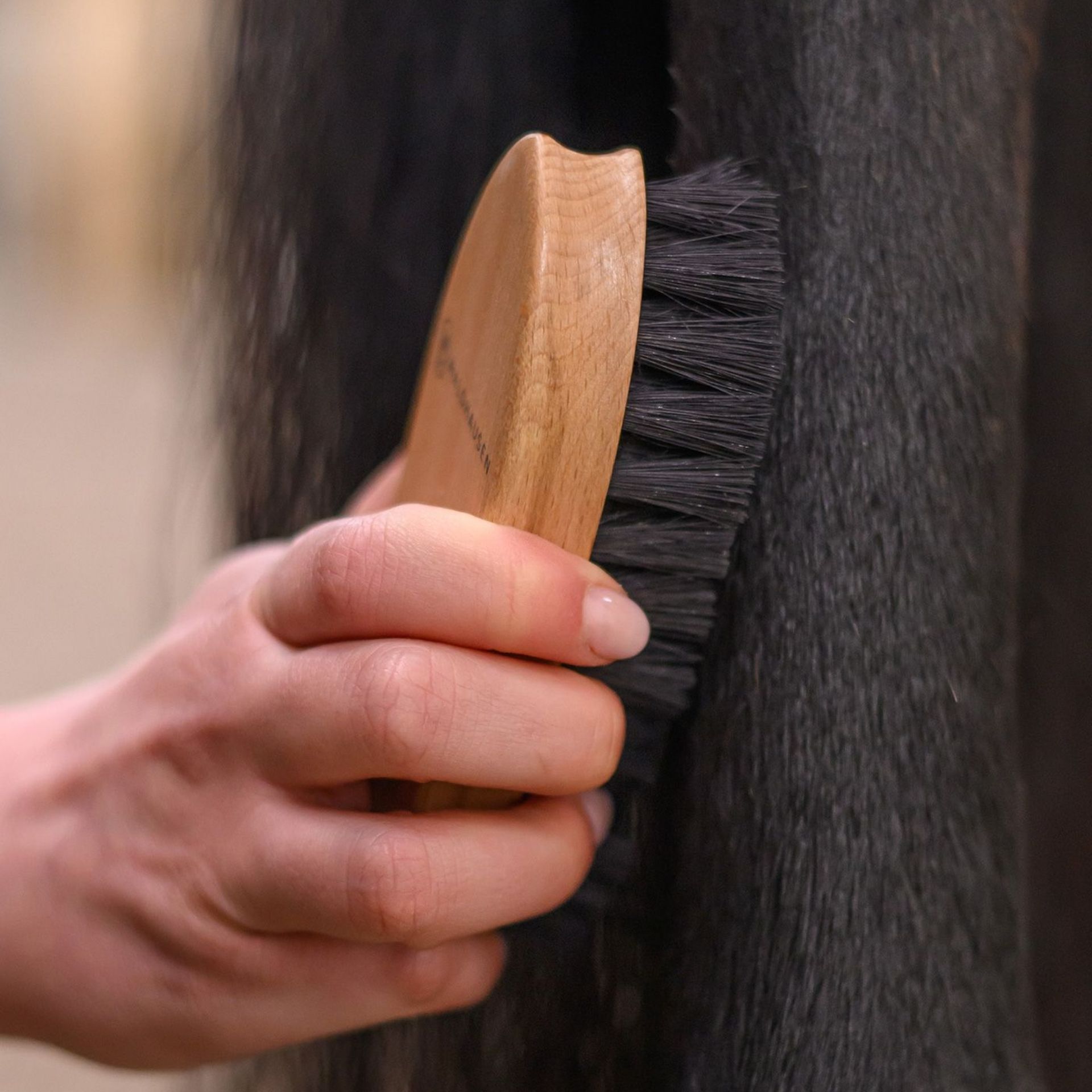 Que ce soit après une randonnée équestre en pleine nature ou après un roulement dans le sable – cette brosse est votre partenaire idéal pour un nettoyage en profondeur. Les fibres solides assurent une élimination efficace des particules de saleté sur le corps et les jambes de votre cheval. Vous serez étonné de la rapidité et de la simplicité avec lesquelles vous redonnerez de l'éclat au pelage de votre compagnon à quatre pattes.
