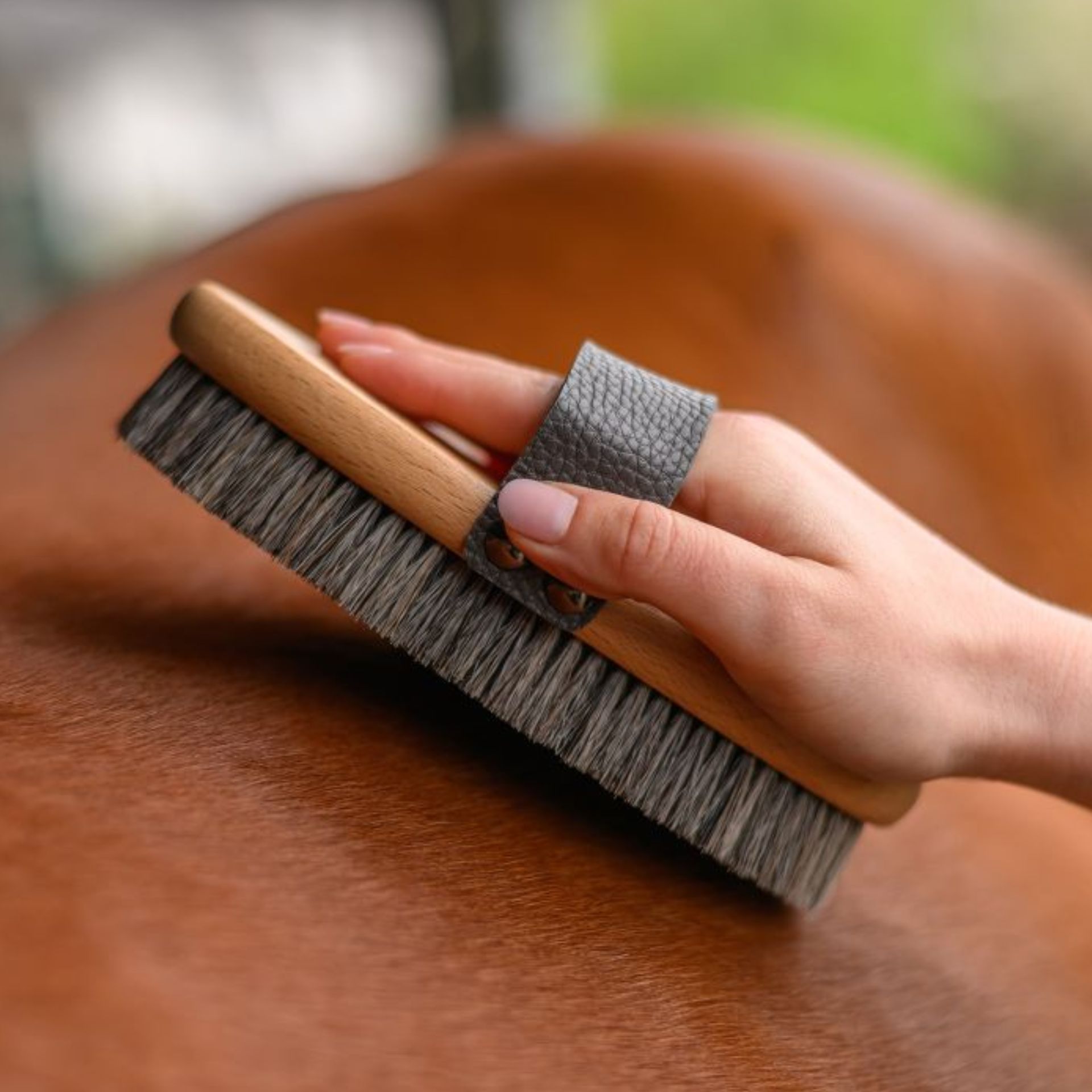 Le mélange spécial de soies est particulièrement doux pour la peau de votre cheval et prévient les égratignures. Vous serez enchanté(e) par l’efficacité et la douceur de la cardère.
