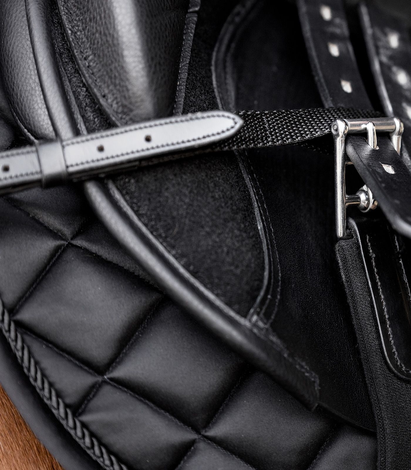 Sa coupe anatomique garantit une liberté de mouvement illimitée pour l'épaule de votre cheval. Simultanément, il assure un maintien sûr de la selle et un confort maximal pendant le dressage.