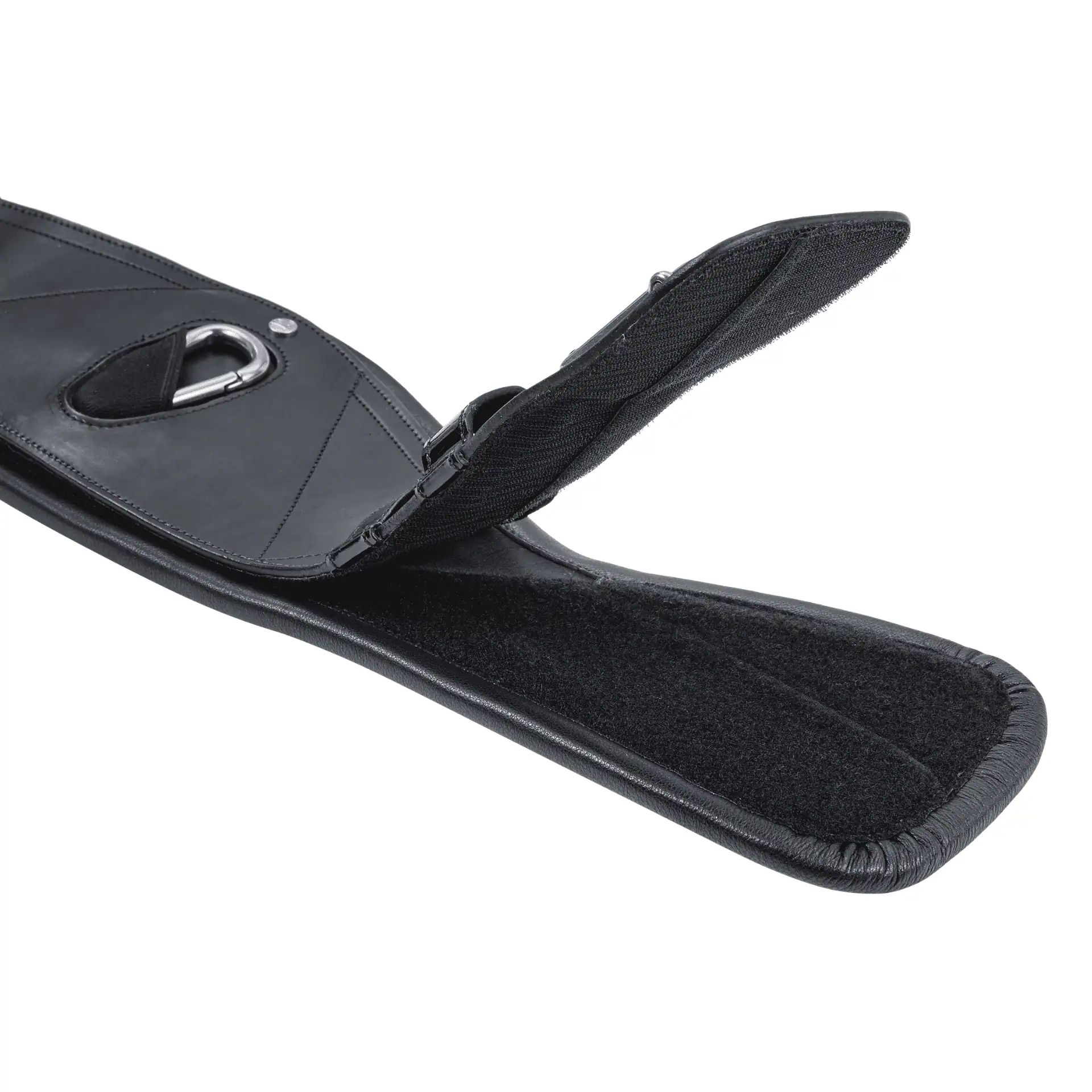 La forme en croissant est idéale pour les chevaux au ventre bombé ou aux côtes saillantes et à la poitrine étroite, chez lesquels les sangles de selle classiques ont souvent tendance à glisser vers l'avant.