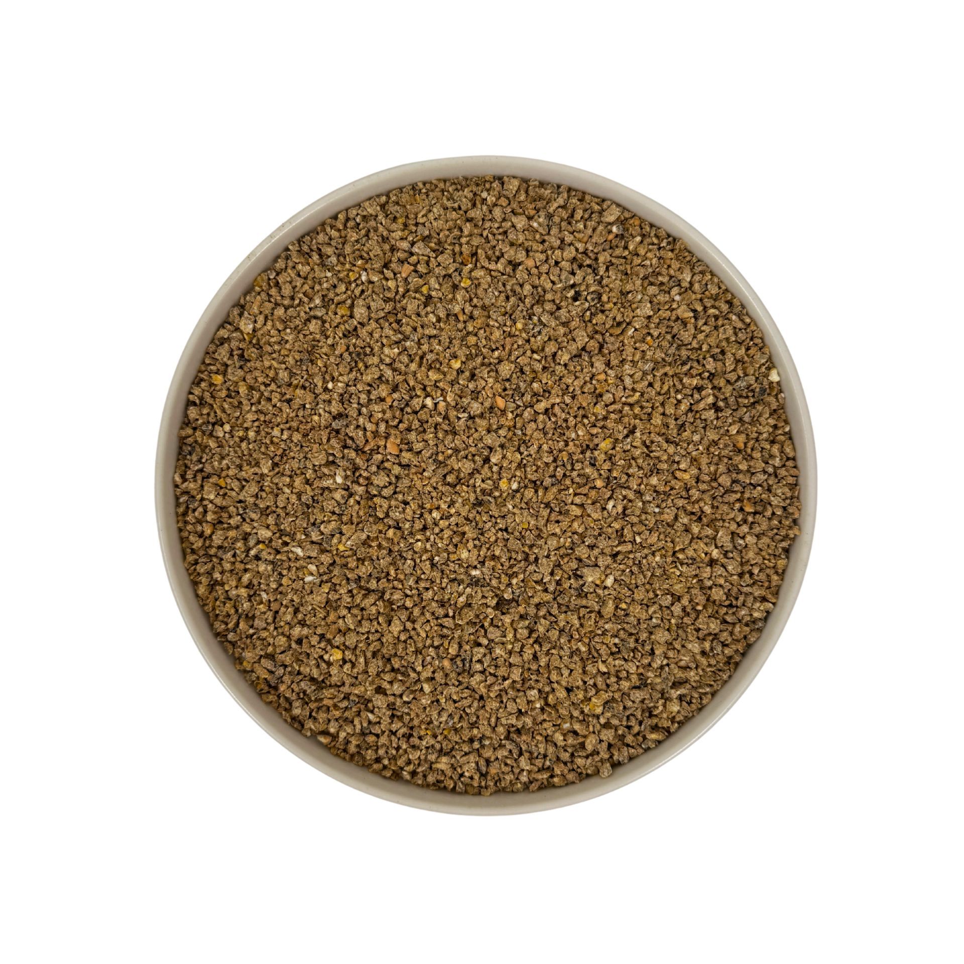 The basis of this feed is a selection of organically grown ingredients sourced from local organic farmers. This cooperation, which has grown over generations, not only ensures the outstanding quality of every grain but also the attention to detail and incomparable freshness that you receive with every bag.