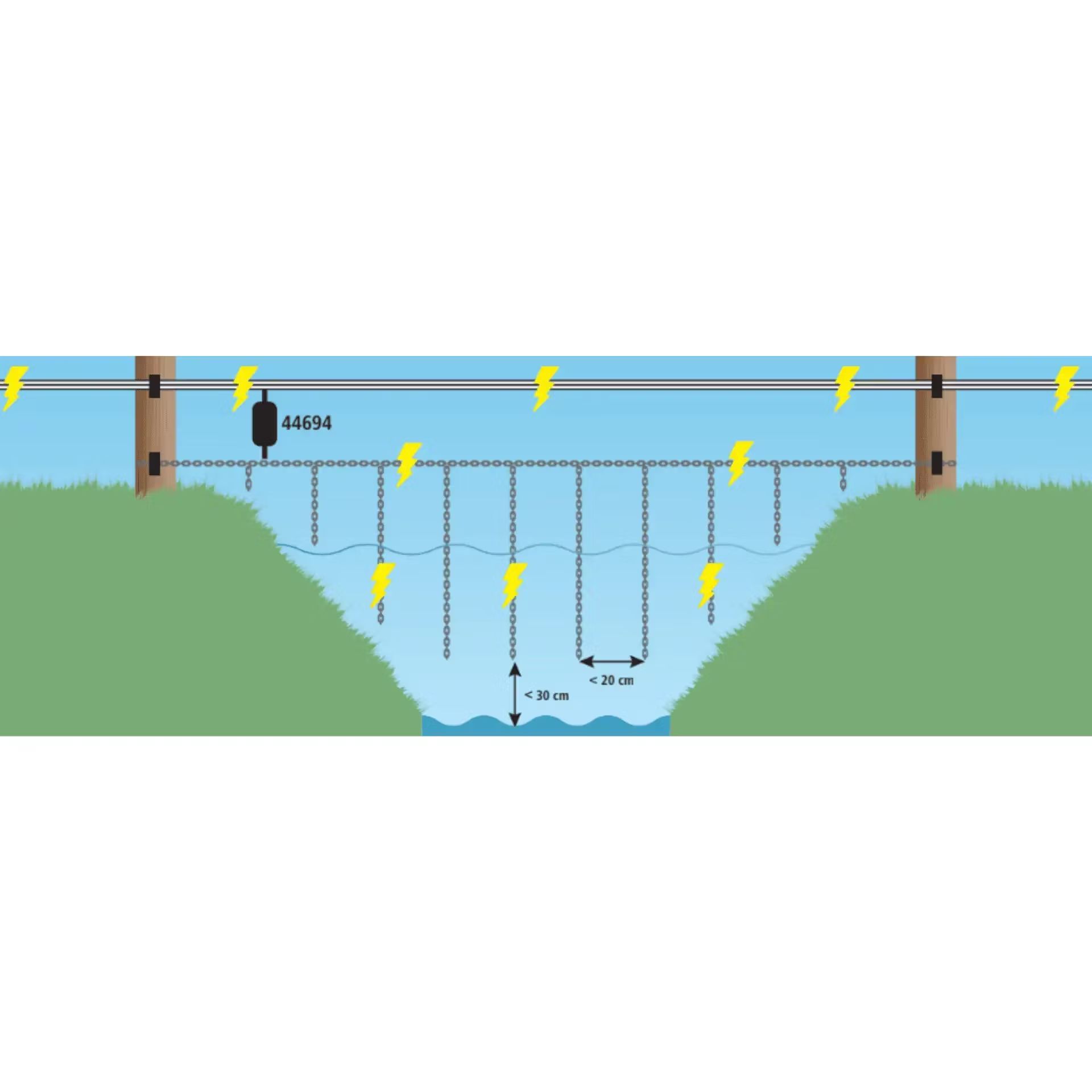 Vous pouvez facilement étendre le filet autour de votre étang à l'aide des piquets à double pointe inclus. L'électrificateur est immédiatement prêt à l'emploi.
