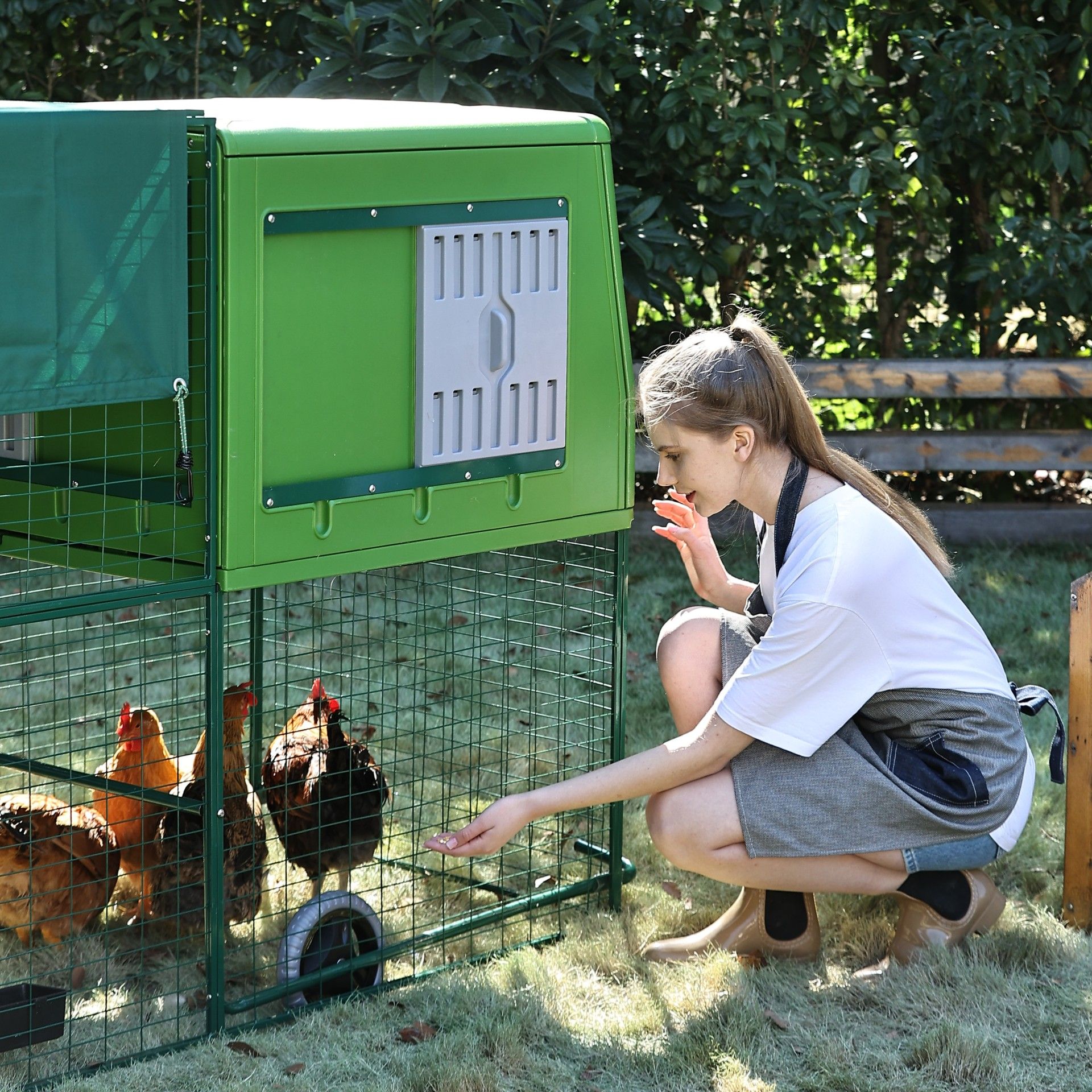- Miracle d'hygiène : Le nettoyage est une affaire de minutes. Un nettoyeur haute pression ou un tuyau d'arrosage suffit, et le poulailler est comme neuf – et surtout immédiatement sec.