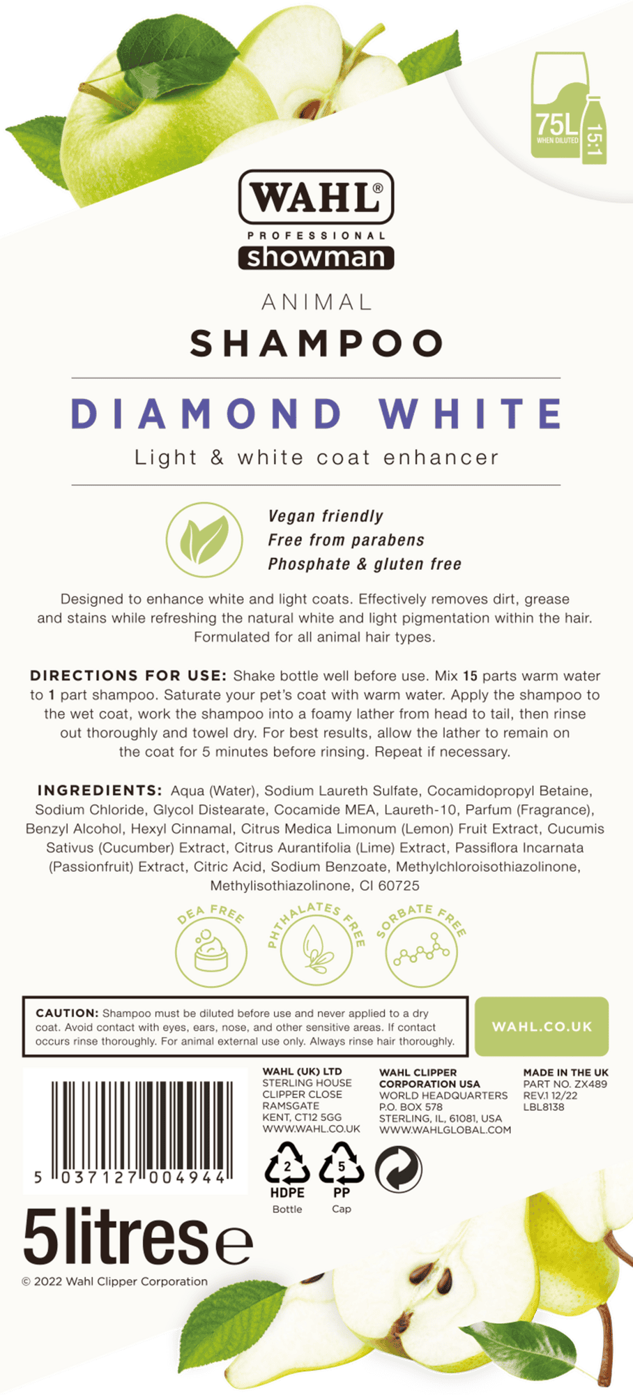 Wahl Diamond White shampooing pour animaux – Pour un pelage d'un blanc éclatant et parfaitement soigné