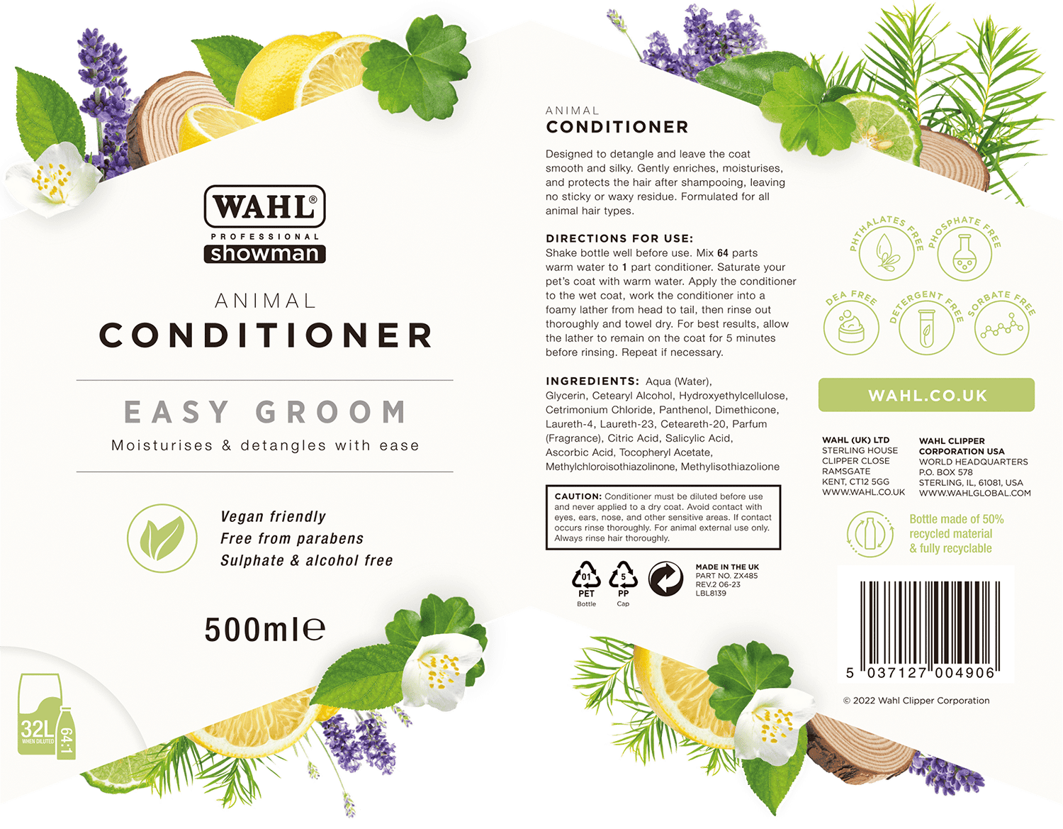 Après-shampoing Wahl Easy Groom – 500 ml – Soin naturel pour un pelage soyeux