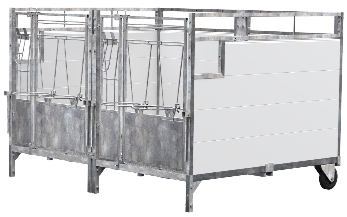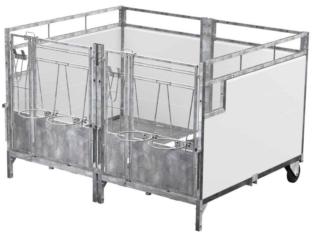 This box stands out due to its unique flexibility: you can easily convert it from a double box to a single box with minimal effort. Plus, thanks to its robust design, it can be moved easily by hand or with a front loader, offering you versatile application options in the barn. Practical everyday handling is supported by large doors, easy-access feeding gates, and simple cleaning, saving you valuable time.