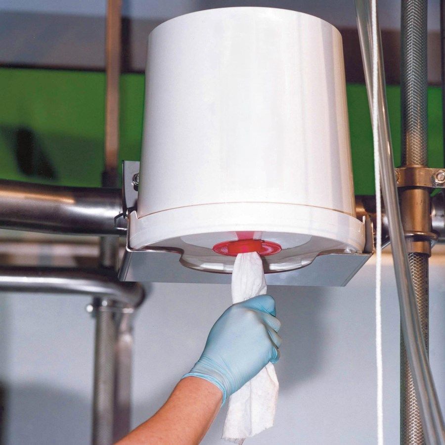 The bucket reliably protects moist udder paper from dirt, drying out, and contamination.