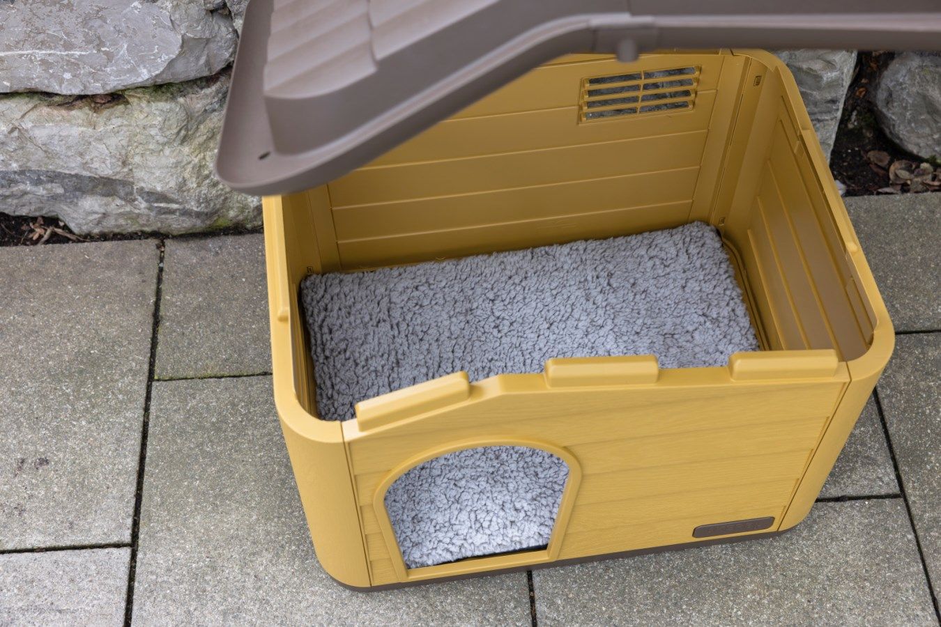 Whether in the garden or the living area – this house is extremely durable and versatile thanks to its UV and weather-resistant properties. Integrated ventilation slits ensure constant air circulation, creating a comfortable environment inside the cave at any time of year.