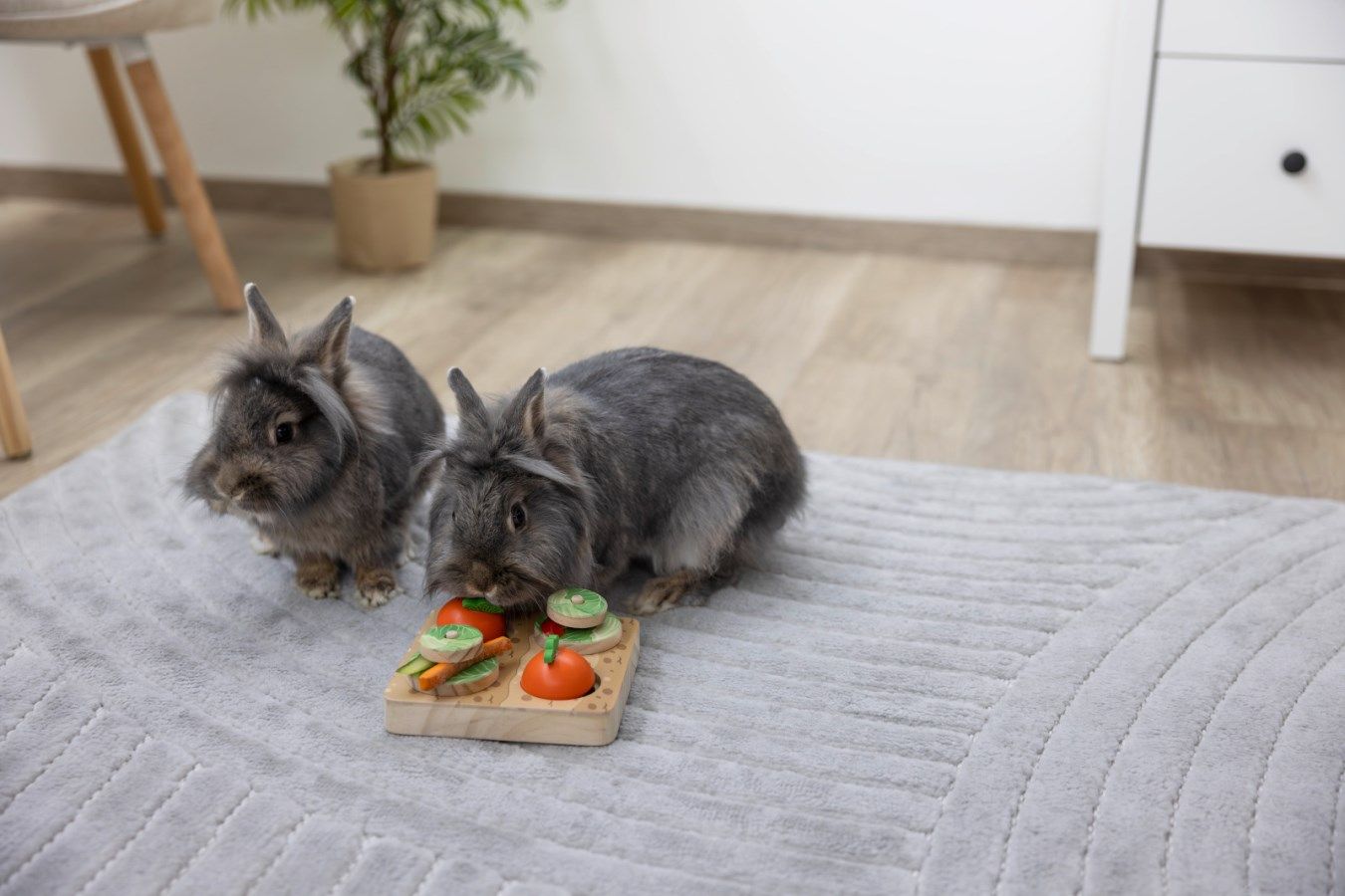 Thanks to two different difficulty levels (nudging up and pushing out), mental activity is specifically promoted and slow, healthy feeding is supported. This effectively reduces stress and helps your rabbits or bunnies stay balanced and happy, even when they are spending time alone.