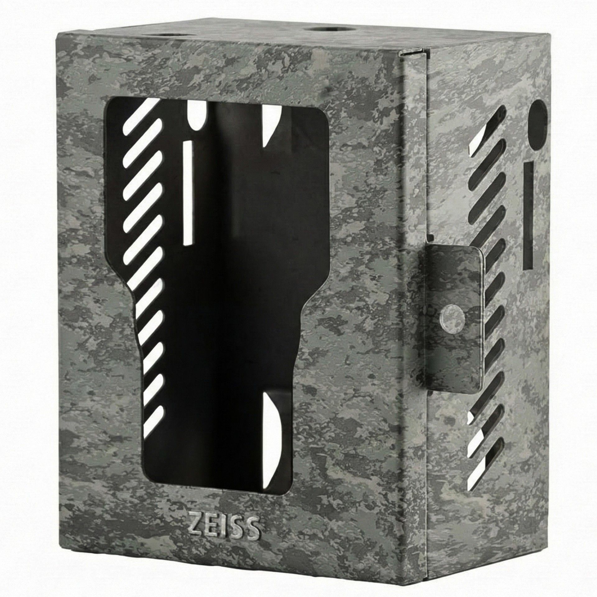 Protégez efficacement votre ZEISS Secacam 1 avec ce boîtier métallique robuste en acier de haute qualité. Il enveloppe entièrement la caméra et offre une qualité d'enregistrement illimitée grâce à des découpes précises pour l'objectif, le capteur et le panneau de LED noires. Le motif camouflage assure la discrétion de la caméra dans la nature, tandis que l'espace entre la caméra et le boîtier augmente la résistance aux chocs et la protection contre le vandalisme.