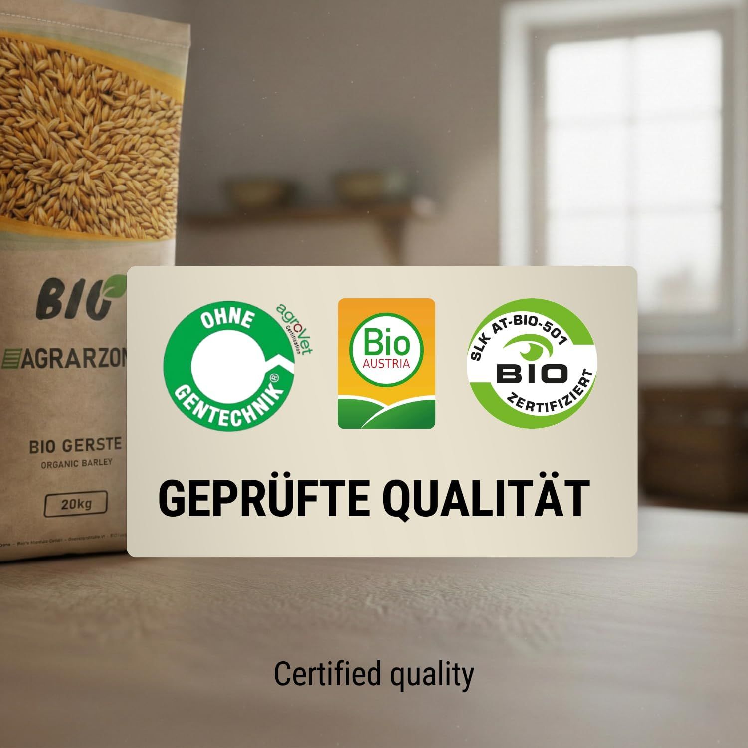 Les grains d'orge sont nettoyés à plusieurs reprises et sont donc extrêmement pauvres en poussière. De plus, la qualité est régulièrement contrôlée par l'organisme de contrôle SLK et est certifiée selon les normes Bio Austria.
