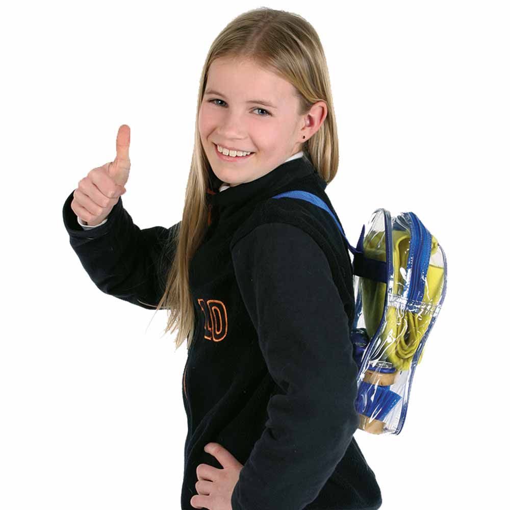 Ce sac à dos de pansage pratique est spécialement conçu pour les enfants. Tout est soigneusement emballé dans un sac à dos transparent et rempli de tout ce dont vous avez besoin pour prendre soin de votre cheval préféré.