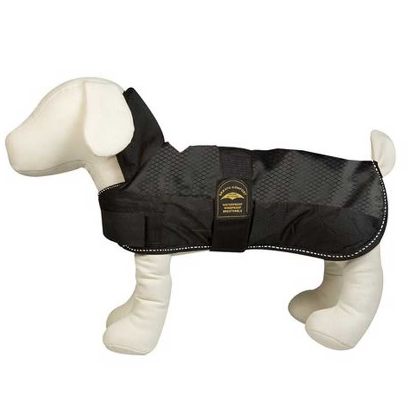 Il est enfin possible de faire de longues promenades avec son chien en hiver, grâce au manteau pour chien Ours polaire qui protège du froid, du vent et de l'humidité, avec un revêtement spécial en téflon. Ce manteau protège parfaitement du froid et du temps souvent humide et froid. Le tissu respirant repousse en outre la saleté, retient l'eau et est imperméable au vent. Le manteau pour chien Eisbär offre un confort optimal, car il est réglable en continu grâce à des fermetures velcro au niveau de la poitrine et, à partir de la taille 50, au niveau du ventre. La coupe est optimisée par les passants supplémentaires pour les jambes, qui empêchent le chien de glisser. Le col est doté d'une ouverture pour la laisse du chien.
