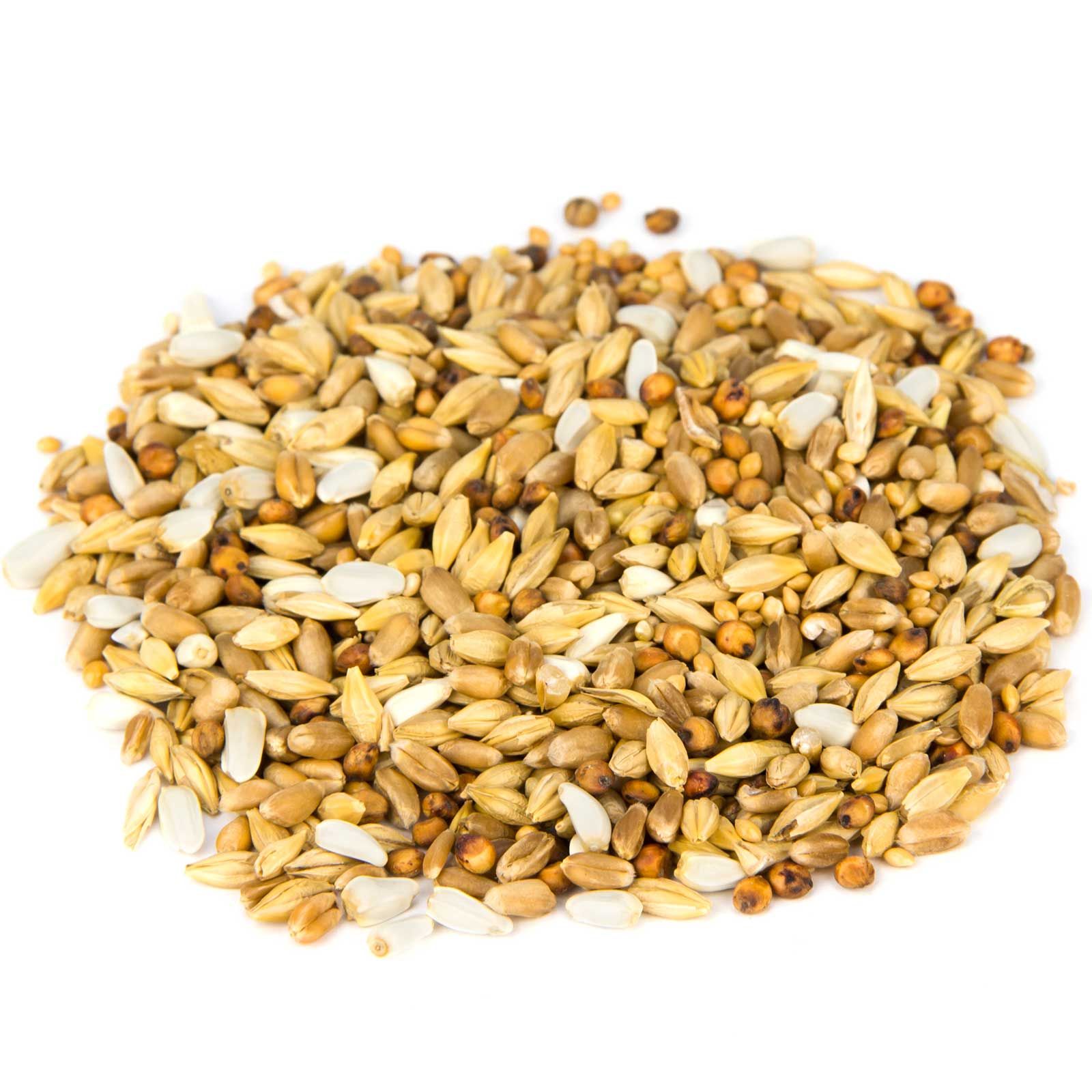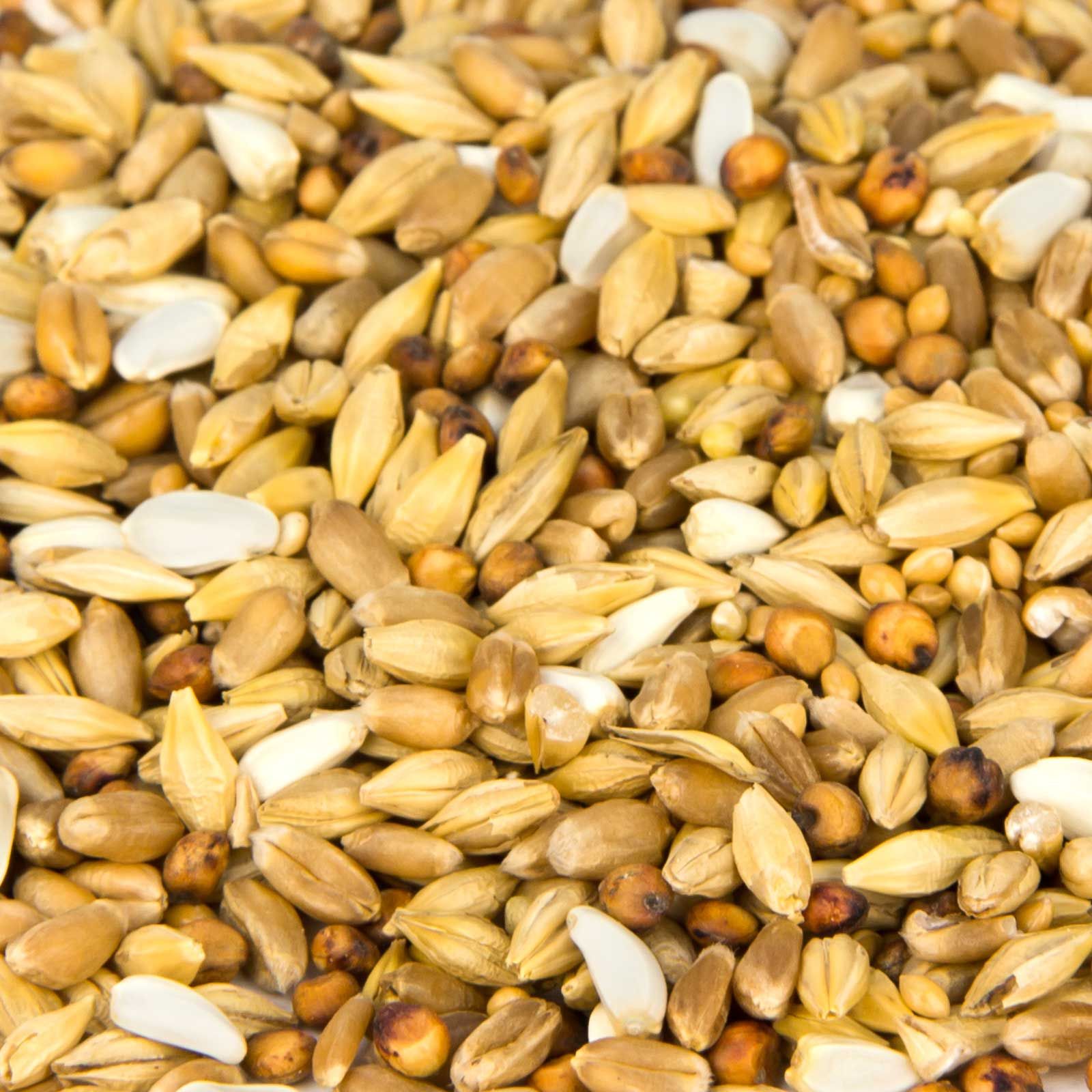 35 % orge de brasserie, 28 % blé, 15 % dari, 12 % grain de millet, 8 % millet jaune, 2 % graine de cardon.
