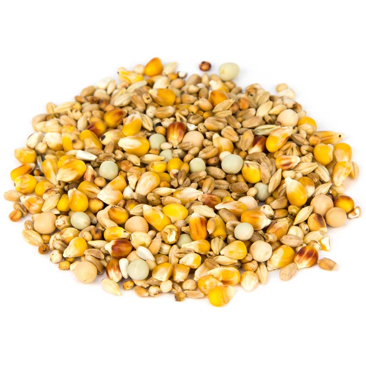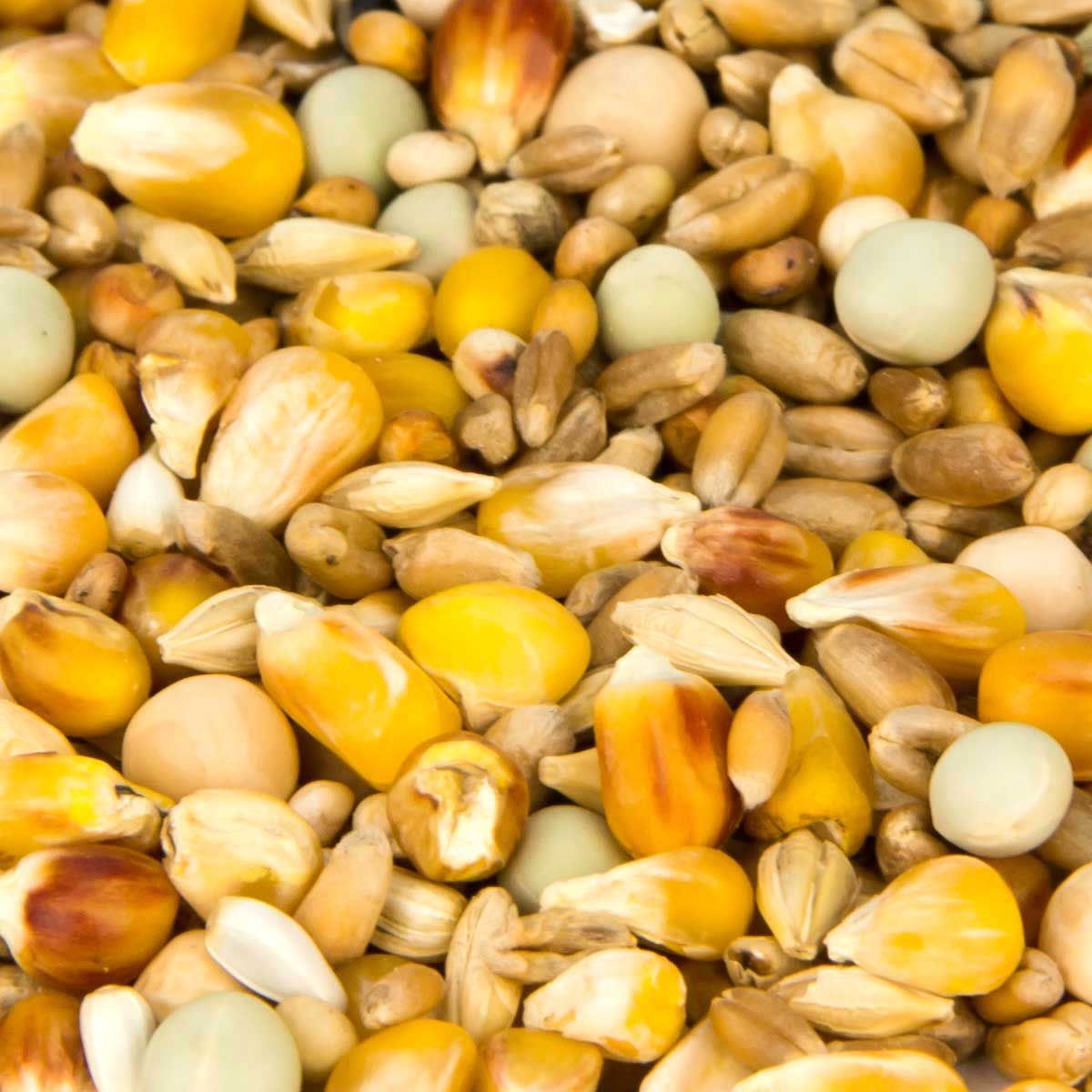 34 % de maïs moyen, 25 % de blé, 5 % de petits pois, 8 % de gros pois, 11 % d'orge de brasserie, 10 % de grains de millet, 4 % de dari, 1 % de graines de cardon, 1 % de vesce, 1 % de millet jaune.