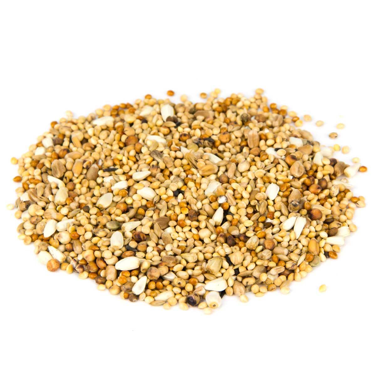 33% millet jaune, 20% blé, 13% dari, 10% grain de millet, 10% mélange de graines, 7% graines de cardon, 7% millet rouge.