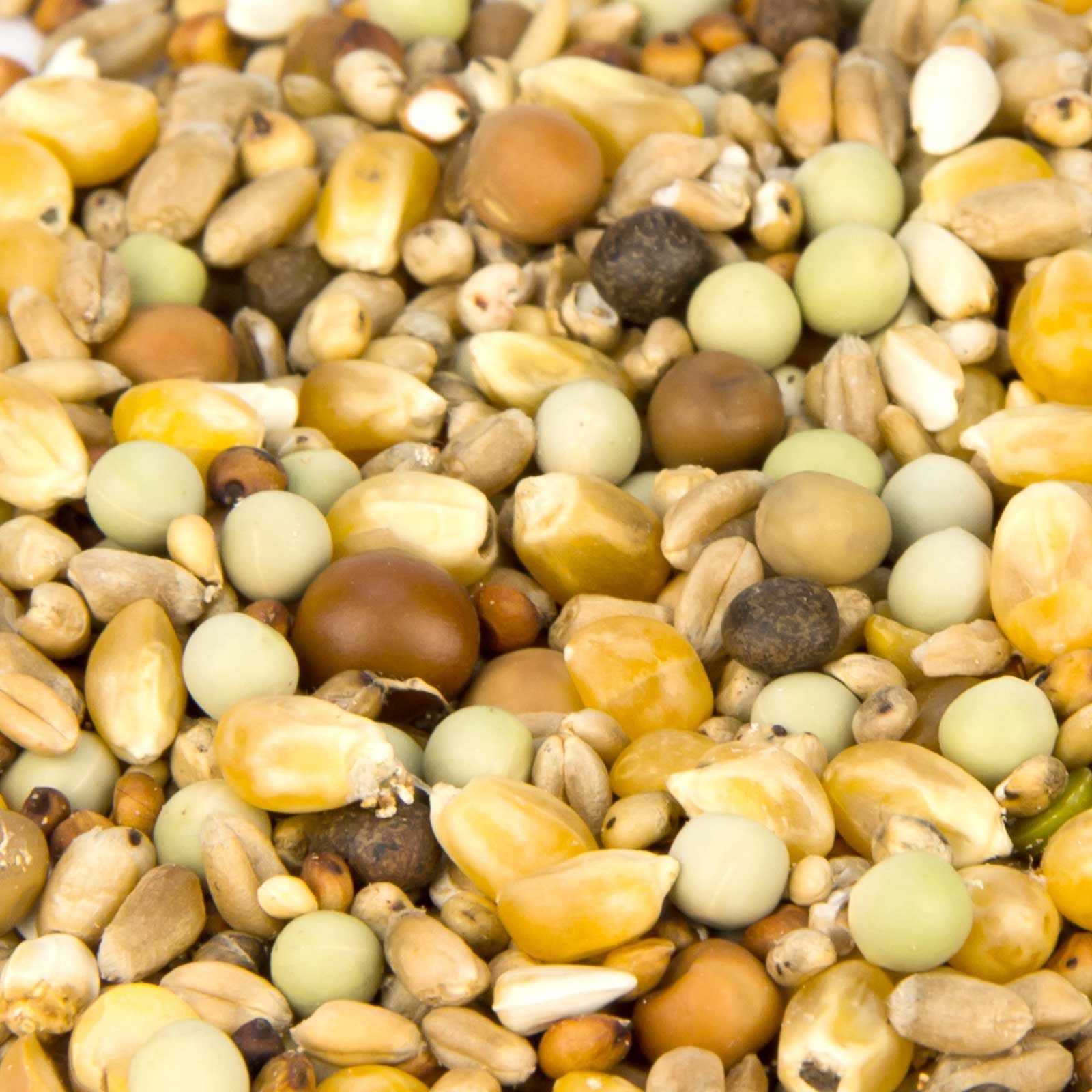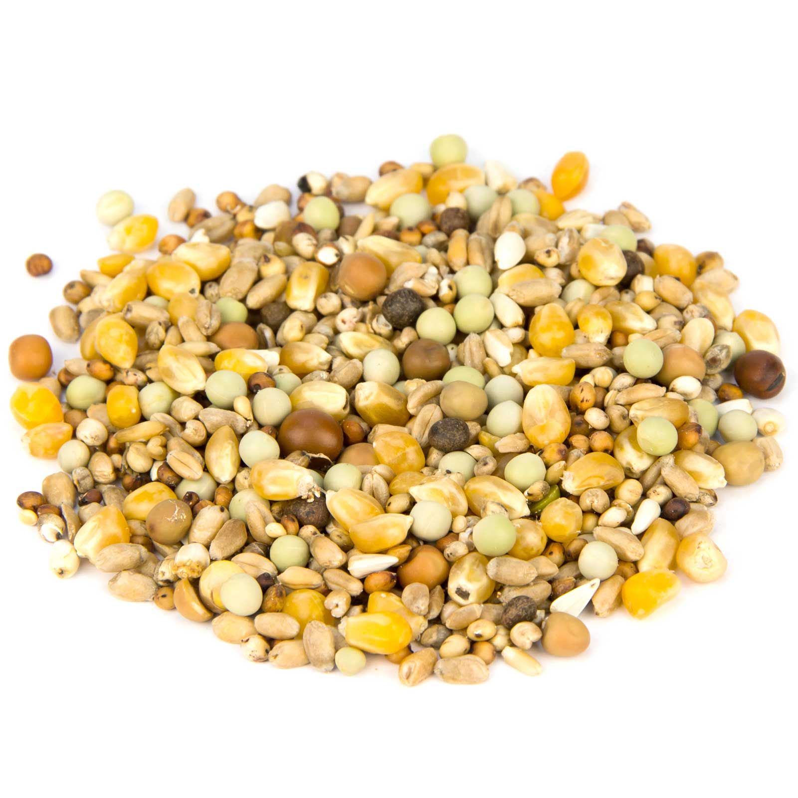 30% petit maïs, 20% blé, 12% petits pois, 13% grain de millet, 7% dari, 7% pelush, 4% graines de chardon, 3% vesces, 2% millet jaune, 2% flocons d'avoine.
