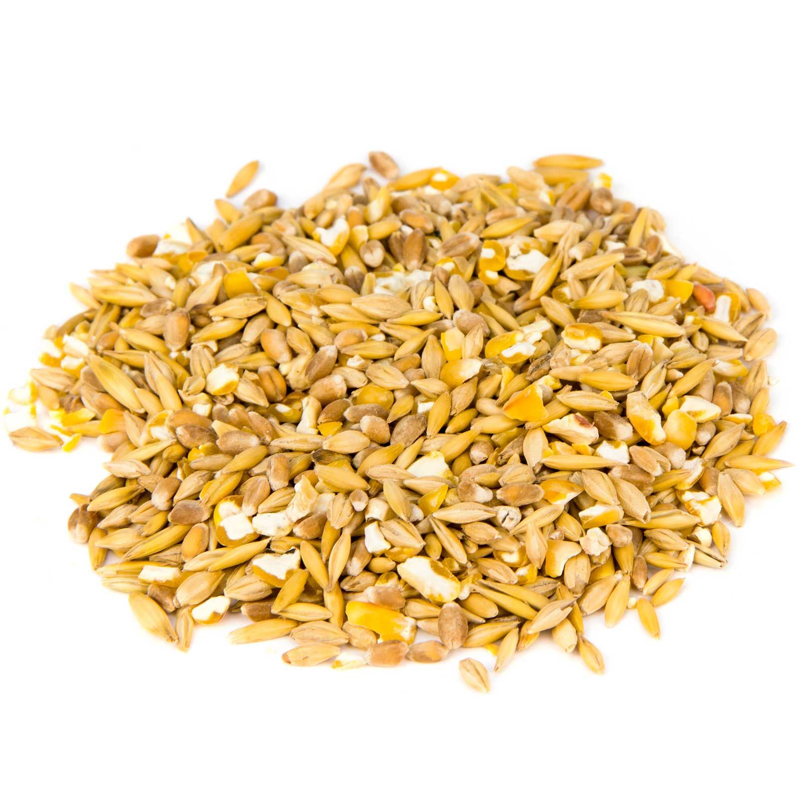 34,00 % d'avoine, 23,00 % de maïs moulu grossièrement, 23,00 % d'orge de brasserie, 20,00 % de blé