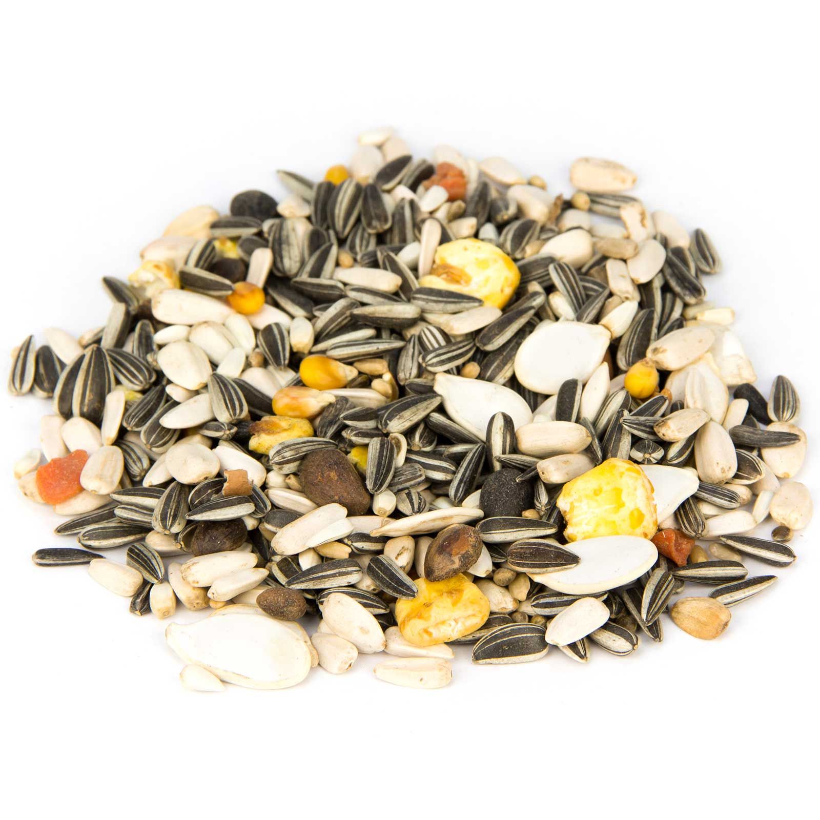 42,00 % de graines de tournesol rayées, 13,00 % de graines de tournesol blanc, 12,00 % de graines de cardamome, 8,00 % de flocons d'avoine, 7,00 % de petits maïs, 6,00 % de chanvre européen, 4,00 % de pignons, 3,00 % de graines de courge verte, 3,00 % d'arachides "à peau rouge", 1,00 % de cubes de carottes, 1,00 % de maïs soufflé