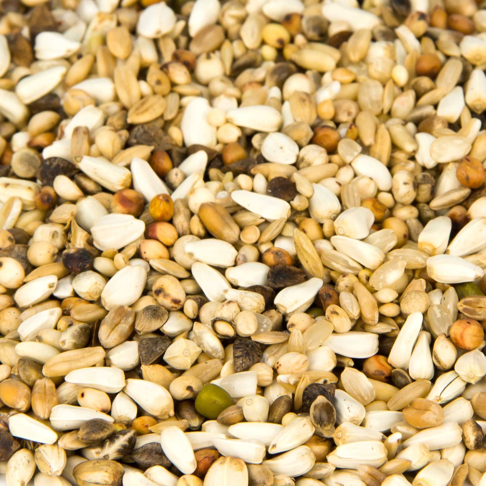 30,00 % cardisaat, 17,00 % dari, 10,00 % riz, 8,00 % flocons d'avoine, 5,00 % sarrasin, 5,00 % chanvre européen, 5,00 % blé, 5,00 % millet blanc, 5,00 % graines brillantes, 5,00 % milokorn, 3,00 % riz paddy, 2,00 % haricots mungo