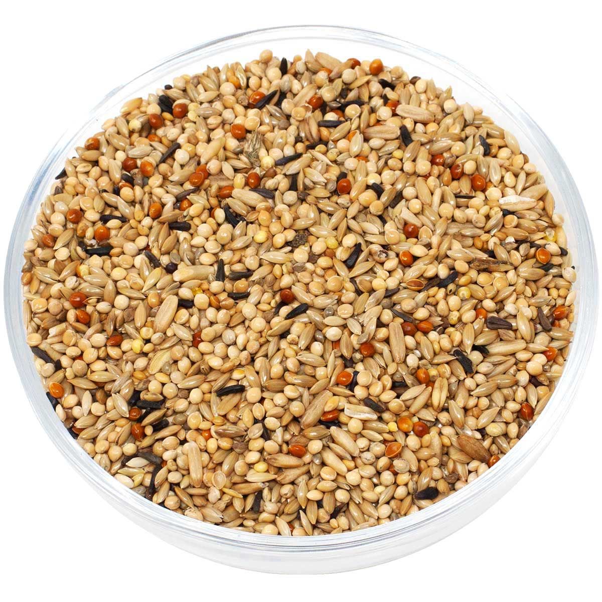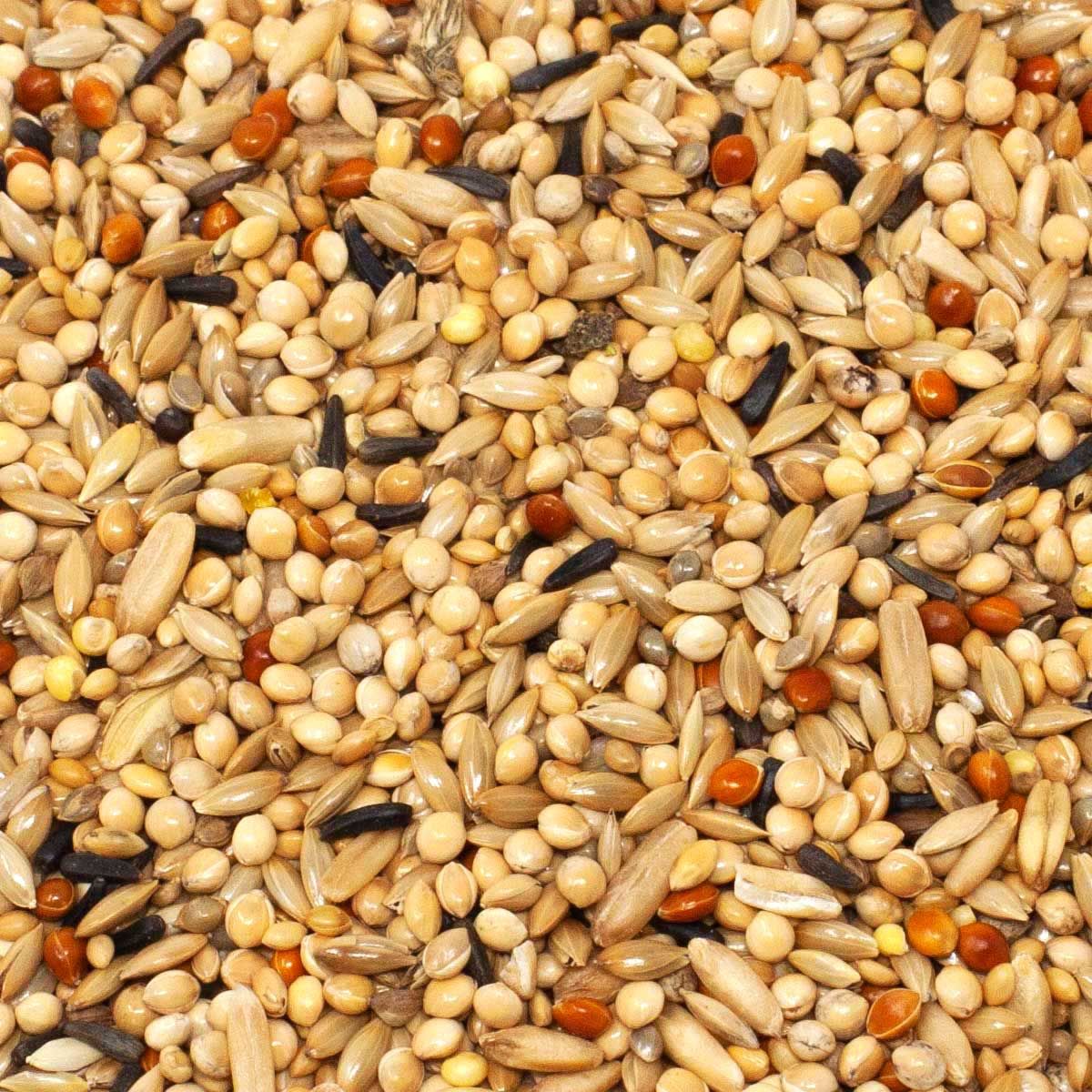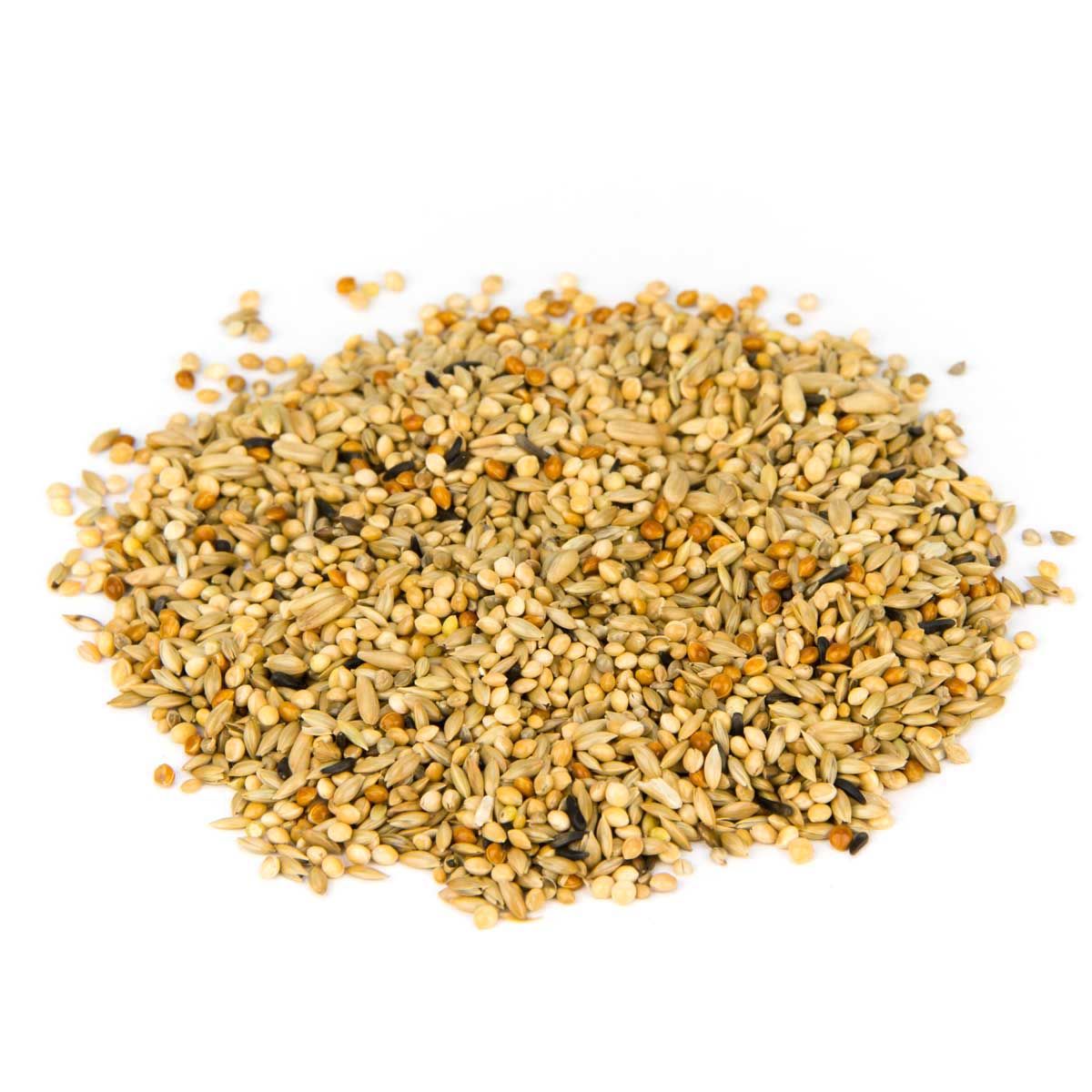 36,80 % de millet jaune, 33,80 % de graines brillantes, 8,00 % de millet du Sénégal, 6,70 % de millet rouge, 6,70 % de flocons d'avoine, 6,00 % de millet japonais, 2,00 % de graines noires