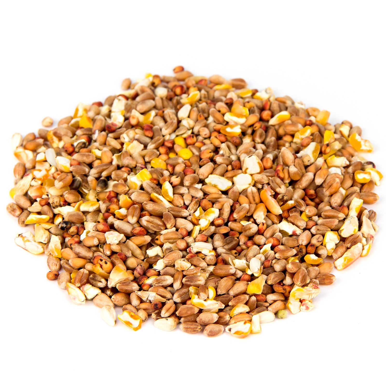 54,0 % blé, 23,0 % milokorn, 16,0 % maïs moulu grossièrement, 2,0 % dari, 1,0 % flocons d'avoine, 1,0 % graines de cardia, 1,0 % chanvre européen, 1,0 % millet rouge, 1,0 % millet jaune