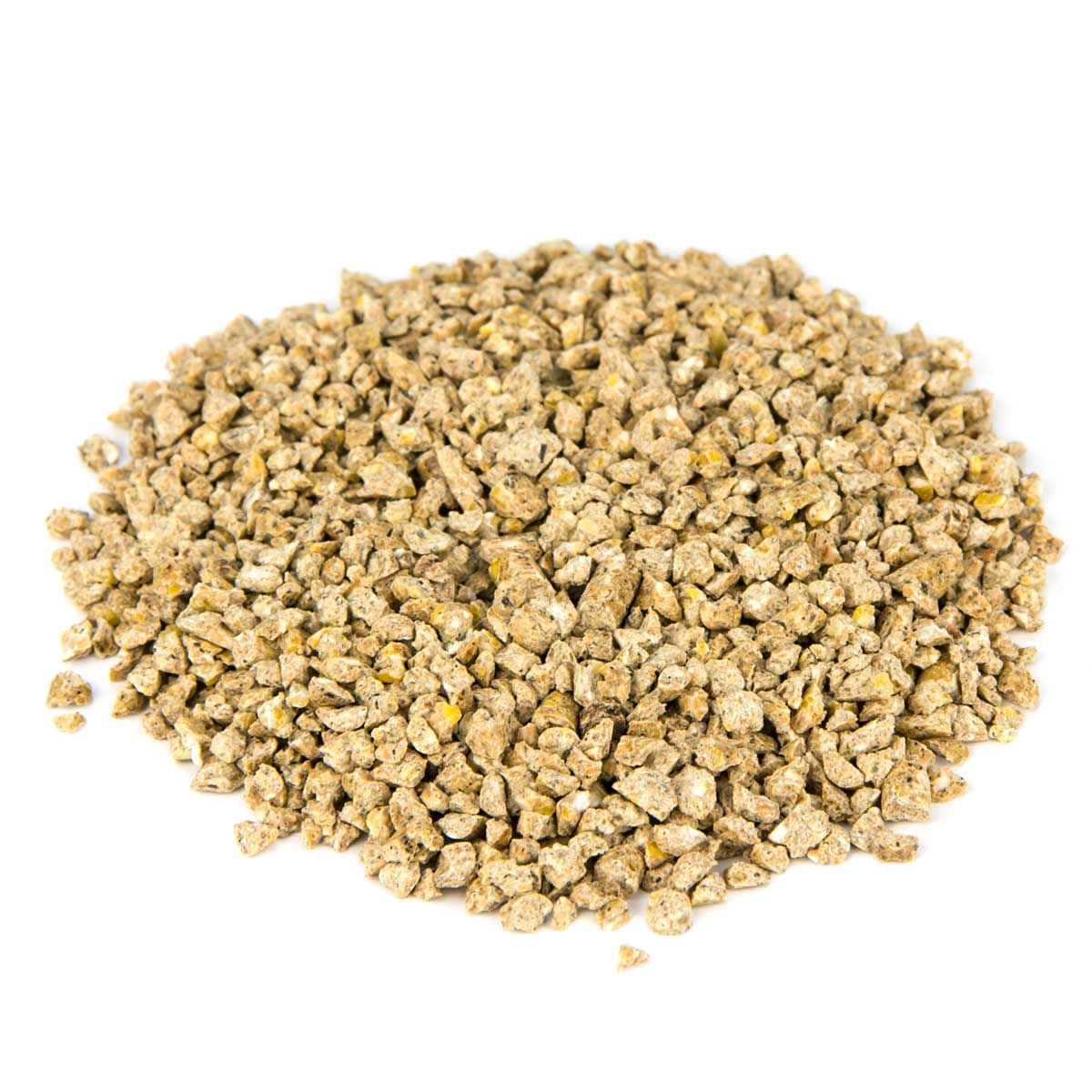 Farine d'extraction de maïs, de blé, de soja (haricots), avec bâtonnet de savon, à partir de graines décortiquées, chauffée à la vapeur, carbonate de calcium, farine d'extraction de colza avec bâtonnet, farine d'extraction de tournesol à partir de graines partiellement décortiquées, graisse mixte (végétale), aliment de gluten de maïs, phosphate monocalcique, chlorure de sodium, bicarbonate de sodium, oxyde de magnésium