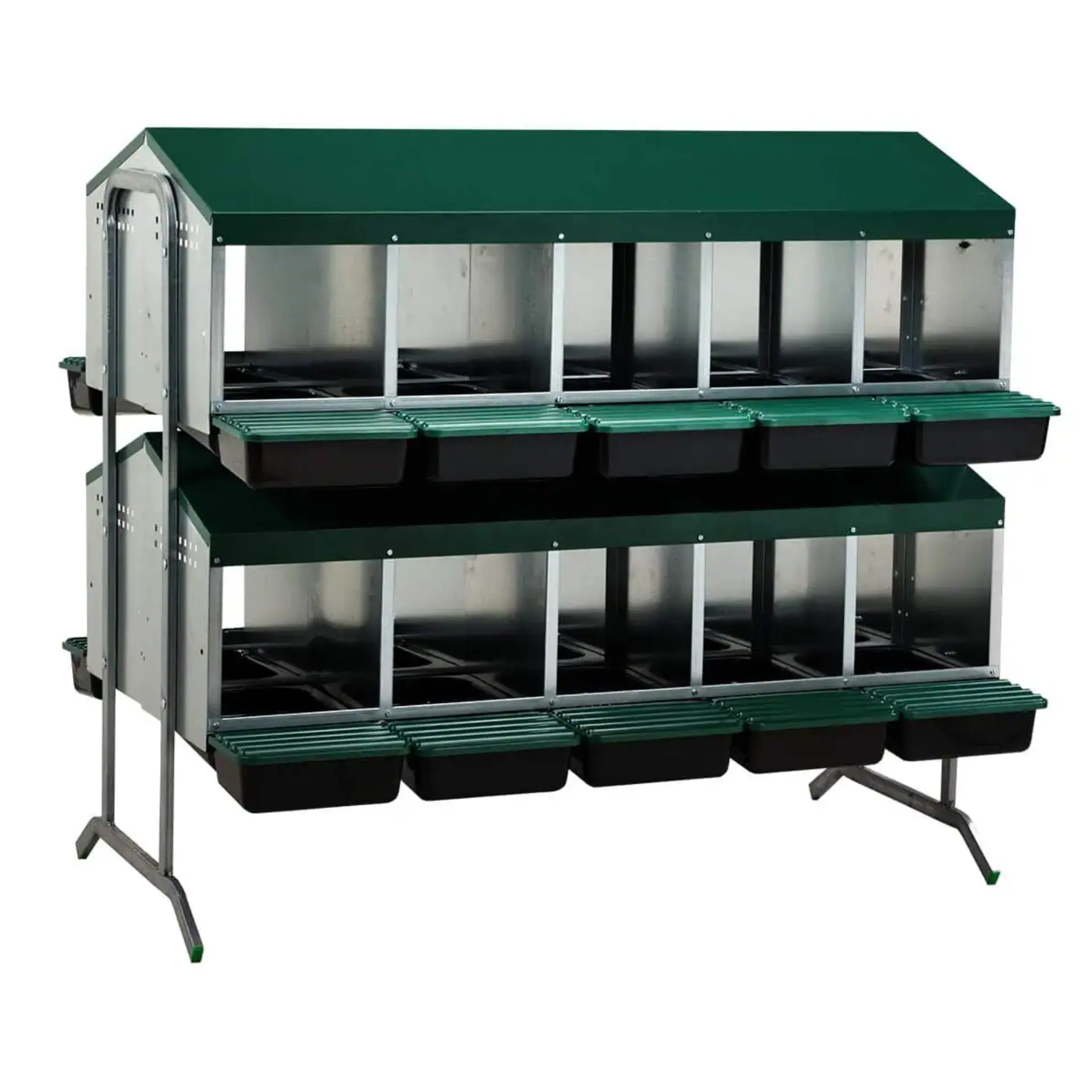 Grâce à nos nids de ponte de qualité supérieure, tu peux élever tes poules de manière adaptée à leur espèce et t'assurer qu'elles vivent dans un environnement agréable. Le pondoir pour poules leur permet d'exprimer leurs instincts naturels et veille à ce que leurs œufs soient pondus en toute sécurité et proprement.